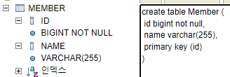 id 컬럼과 name 컬럼을 생성해주고 id는 primary key(pk)로 지정한다.